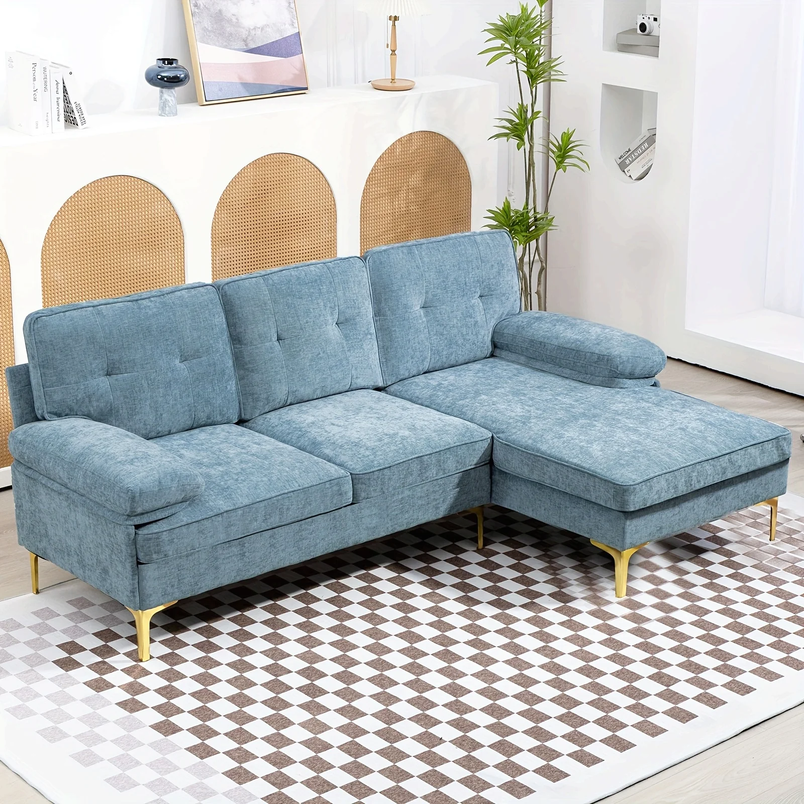 84"L Shape Sofa For Living Room, Convertible L Shape Couch 3 Seat Comfy Sofa, Modern Chenille Fabric Couches With Reversible Wide Chaise & Fluffy Armrests For Apartment, Small Space